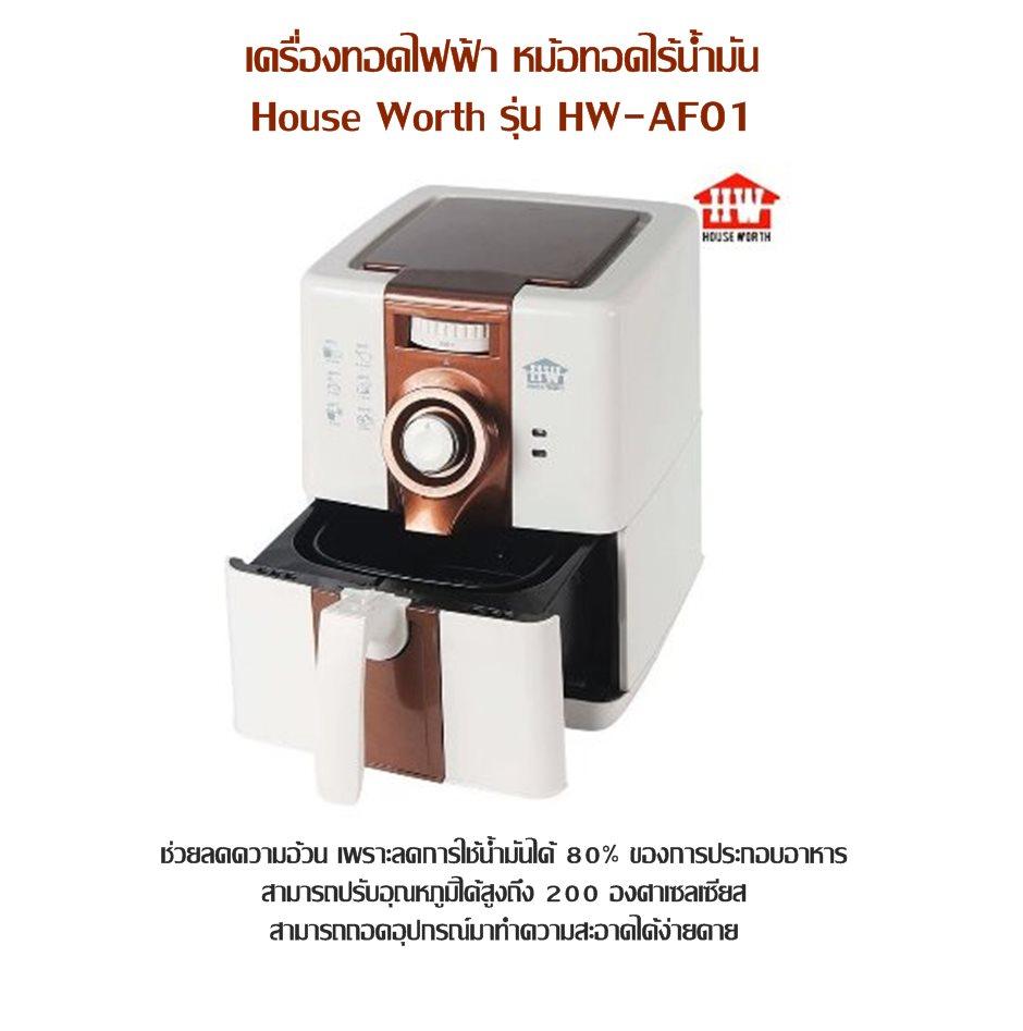 เครื่องทอดไฟฟ้า หม้อทอดไร้น้ำมัน House Worth รุ่น HW-AF01 (สีขาว) ช่วยลดความอ้วน เพราะลดการใช้น้ำมันได้ 80% ของการประกอบอาหาร สามารถปรับอุณหภูมิได้สูงถึง 200 องศาเซลเซียส สามารถถอดอุปกรณ์มาทำความสะอาดได้ง่ายดาย