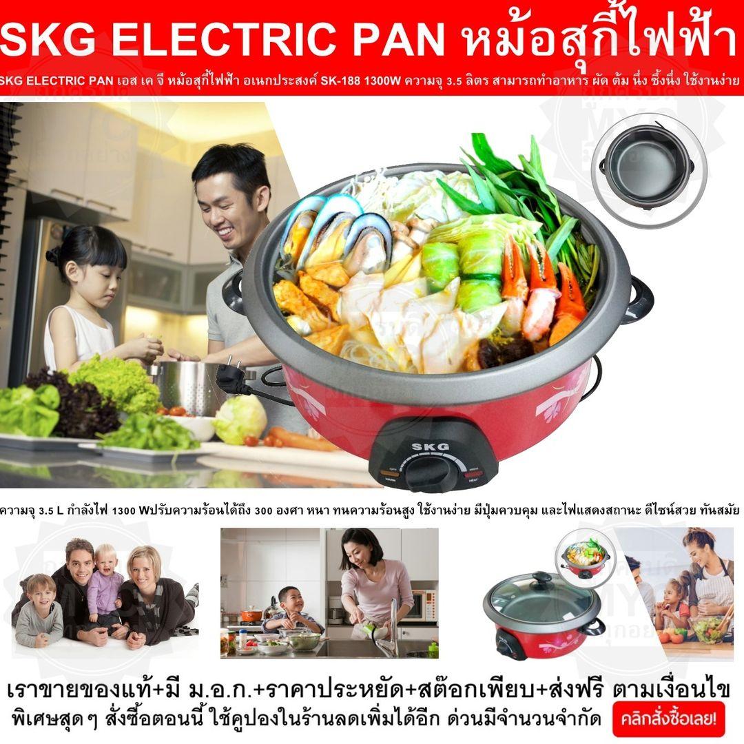 ♋ แนะนำสินค้าพวกคุณโชคดีแล้วที่มาเจอ SKG ELECTRIC PAN (Suki) เอส เค จี หม้อสุกี้ไฟฟ้า อเนกประสงค์ SK-188 1300W ความจุ 3.5 ลิตร ทำอาหาร เป็น สุกี้ ผัด ต้ม ผัด แกง ทอด ปรับอุณหภูมิความร้อนหลายระดับ ได้ถึง 300องศา ให้ความร้อนสม่ำเสมอ ปลอดภัยในการใช้งาน มี ใช้งานง่าย และครบครัน V19 2N-01
